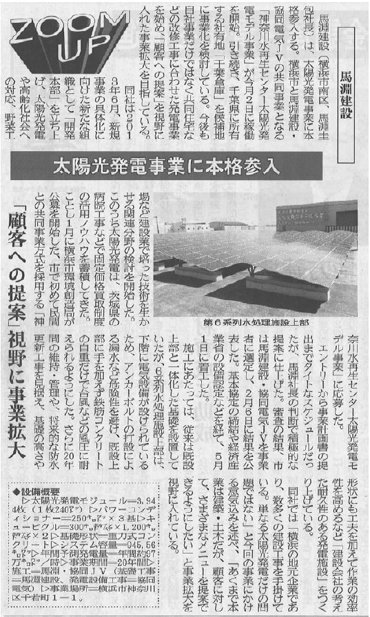 【横浜市初】民間との共同事業方式による下水道施設空間を活用した太陽光発電モデル事業