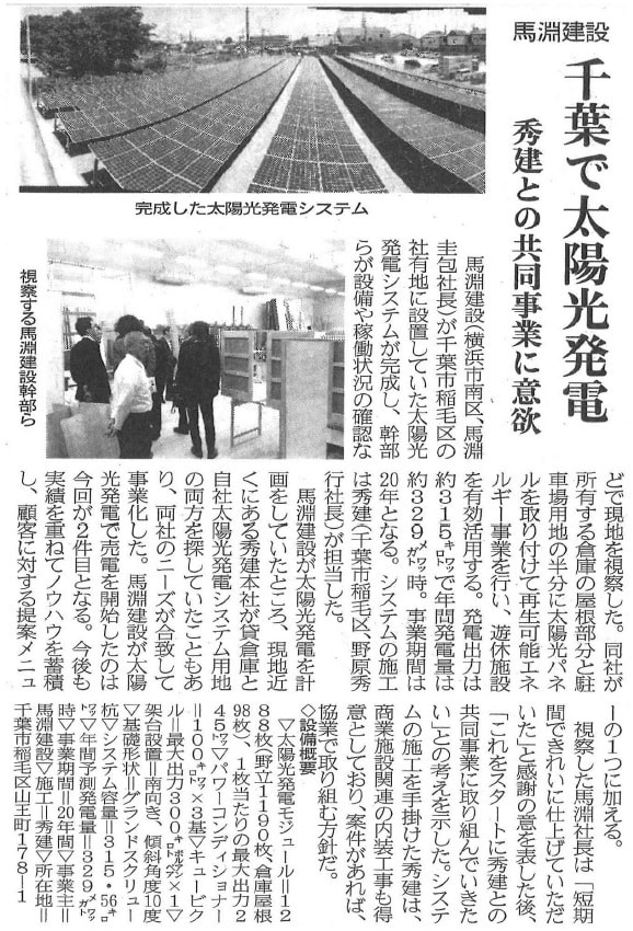 自社事業として横浜、千葉にて合計2メガを超える発電事業を展開しております。