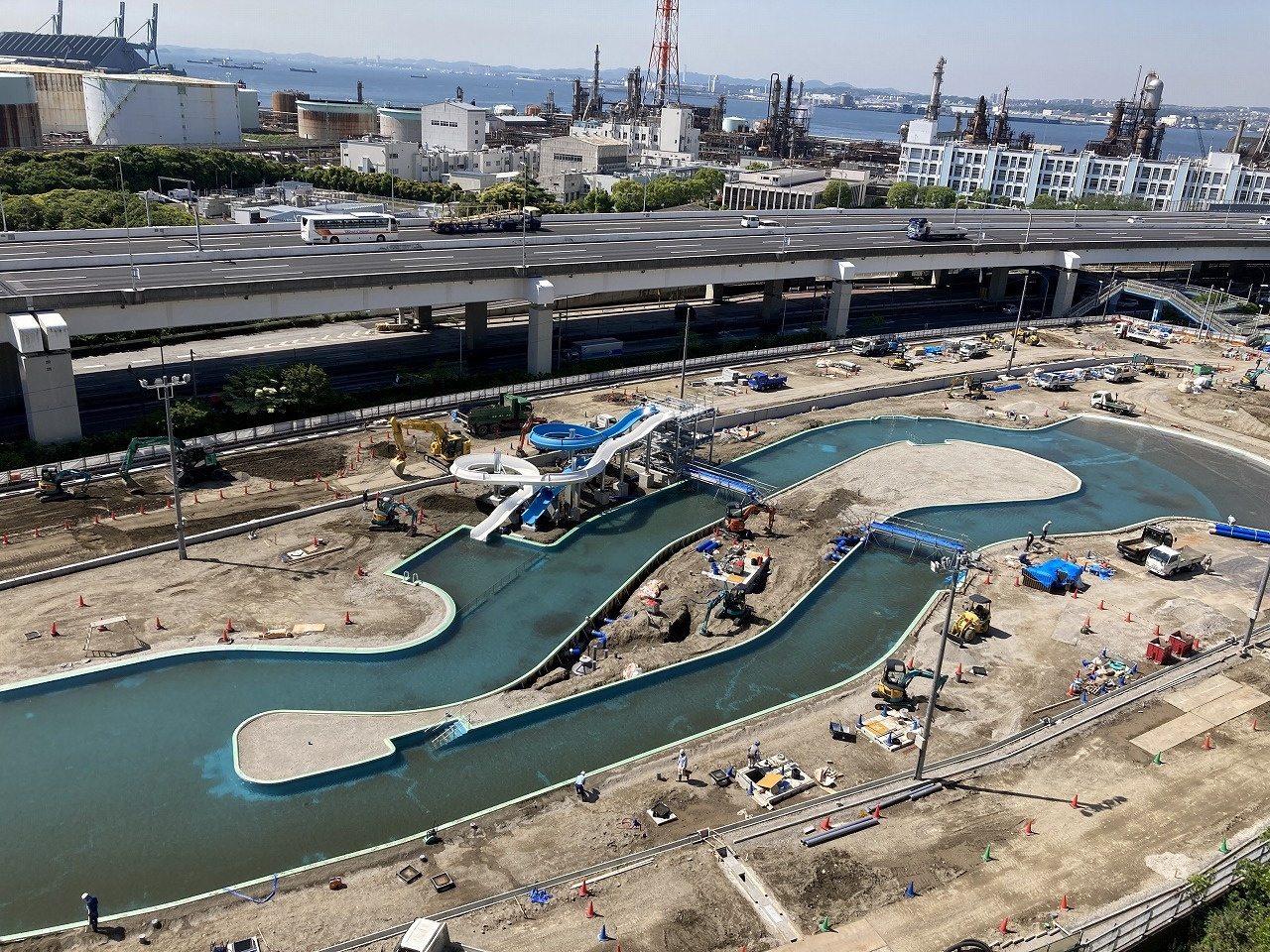 海岸をイメージした渚や流れるプール、スライダーやアトラクションエアープール、マウンテンスライダーなどが設置され、オフシーズンにはキャンプやSUP(サップ)、カヌーなどのアクティビティが楽しめます。さらに、一年中利用可能なBBQ場も設けられています。