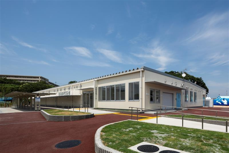 災害時の一時避難施設として十分に広さをとった管理棟、プールの水も災害時の生活用水として利用することが可能です。